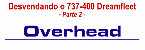 Todos os procedimentos no Overhead estão listados a seguir e seria interessante a impressão deste documento para utilização durante a preparação do vôo. Você poderá selecionar as áreas de interesse e criar um documento resumido, onde estejam descritos as ações a serem tomadas (textos na cor azul) , excluindo as fotos e textos não pertinentes a estas.
